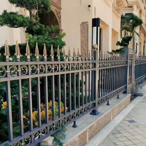 Décoration extérieure de haute qualité Clôture de jardin Clôture en acier au zinc résistant aux intempéries Clôture en fer forgé noir